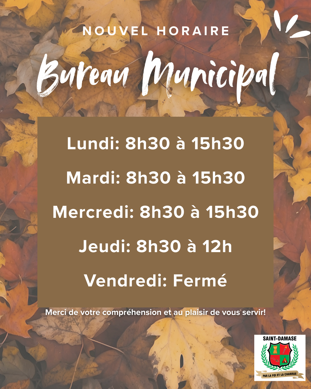 Nouvel horaire du bureau municipal